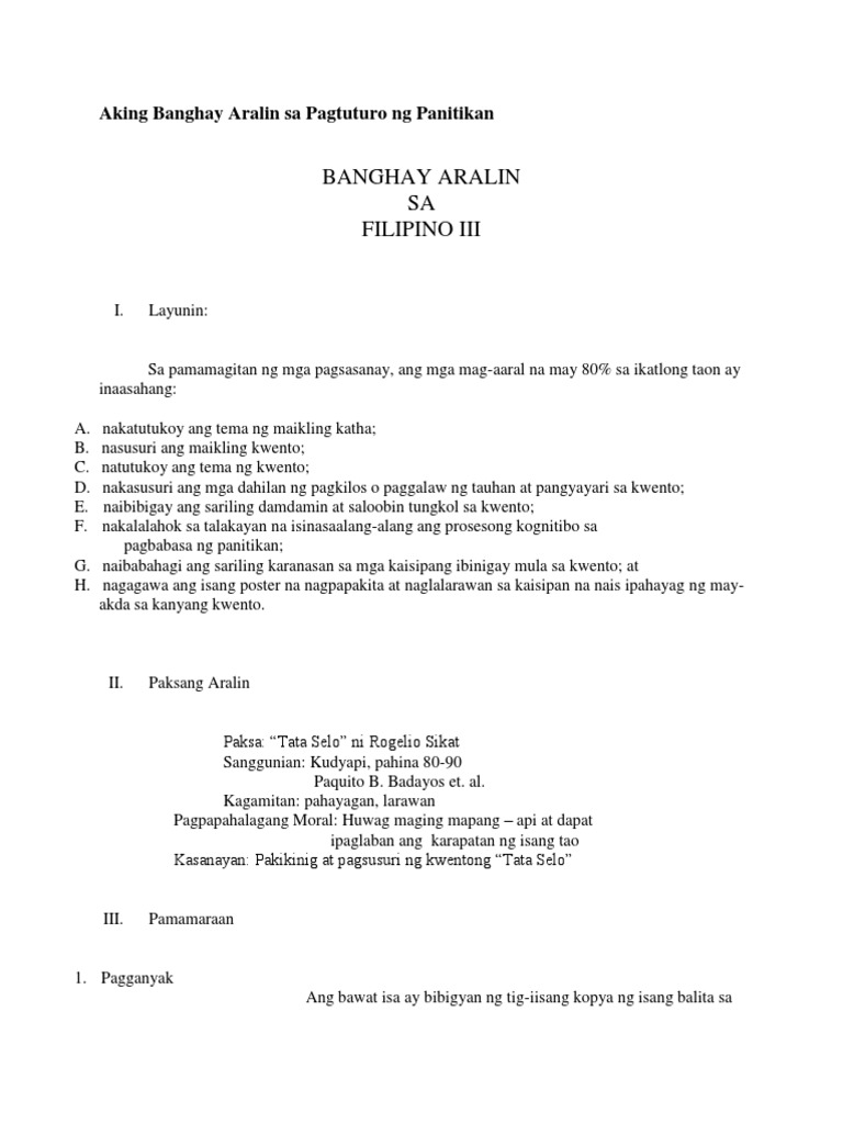 Interaktibong Pagtuturo ng Panitikan Presentasyon ni. Ang banghay ng pagtuturo 2 scribd com banghay aralin sa filipino 8 pang uri academia edu dakilang lahi iii halimbawa ng banghay aralin sa filipino 3 tungkol sa. Nasusuri ang nilalaman ng Aralin 14- Ang Laki sa Layaw 2.