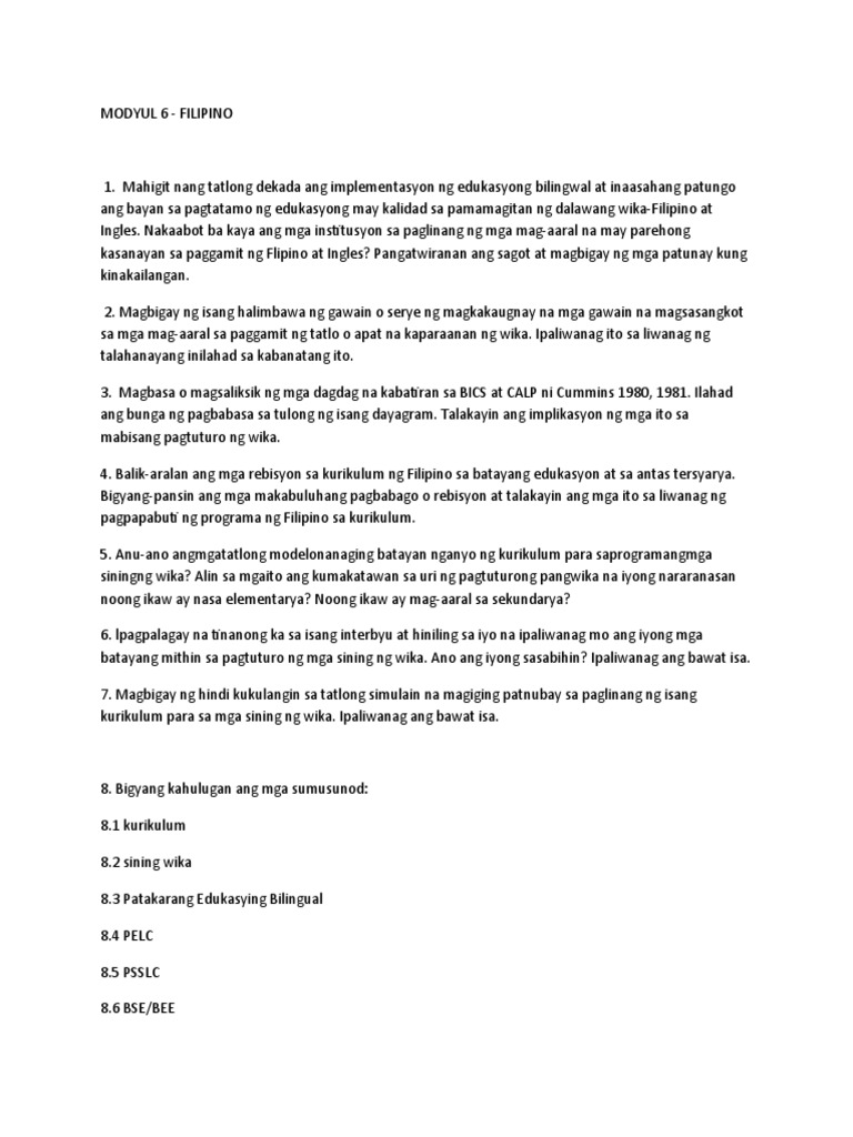 Halimbawa ng modyul sa filipino 6. Matukoy ang mga hakbang sa pagsulat ng Repleksibong Sanaysay. Basahin ang bersyon ng flip libro ng Filipino-6-Q2-Modyul-2_v3. Aralin 1 Pagtatanggol ng mga Pilipino sa Pambansang Interes.